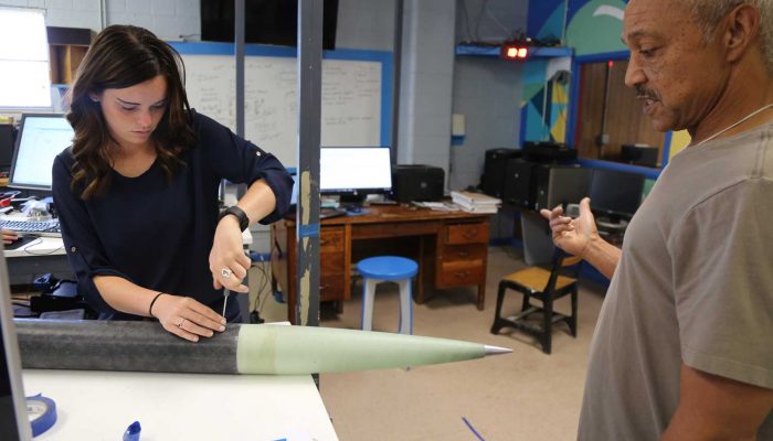Photo of Rene rocketry achievement attemptFor Rene, planning and creating Machinator was a six-month process, hand-laying its carbon-fiber body, lathing its aluminum tail nozzle and packing its 72-inch recovery parachute. When launched, the rocket’s N-type motor, the largest a Cal Farley’s resident has ever built, provided 512 pounds of thrust, potentially pushing Rene’s creation to a top speed of Mach 2.2, or nearly 1,675 miles per hour, in just over six seconds. A series of telemetry devices, including GPS and radio trackers, two internal computers and an on-board camera will record the rocket’s flight data.